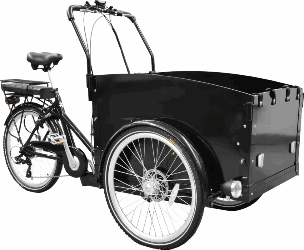 Mit diesem Cargo E-Bike transportierst du mühelos Einkäufe, Kinder oder sogar deinen Hund in der großräumigen Holzbox! 🐾