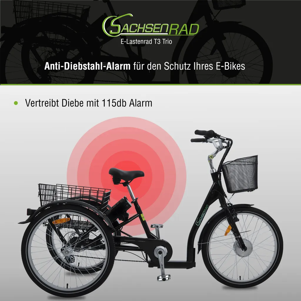SachsenRad E-Lastenrad T3A Trio Edition 2025 mit Alarmanlage mit LCD Display und StVZO-Zugelassung